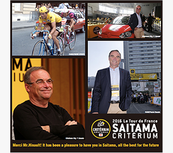 10月29日(土)「 J:COM presents2016ツール・ド・フランスさいたまクリテリウム」のオープニングにて、ツール・ド・フランス5回の優勝を果たし、自転車競技界に数々の功績を残されたベルナール・イノー氏のツール・ド・フランスアンバサダー引退セレモニーが開催されました。