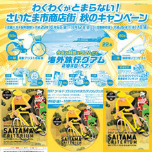 大会案内INFORMATION その他イベント ツイート J:COM presents 2017ツール・ド・フランス さいたまクリテリウムでは、大会を盛り上げる様々なイベントを行なっています。ぜひご参加ください。 さいたま市商店街秋のキャンペーンさいたま市内の加盟店が参加をする販促キャンペーンにタイアップします。大会メインビジュアルを活用したキャンペーンタイアップポスターを展開し、大会観戦チケットやオフィシャルグッズが当たるキャンペーン、ノベルティプレゼントなどを実施します。 さいたまクリテリウムスタンプラリーさいたま市中央区内のスタンプラリー参加47店舗にて買い物をすると、ツール・ド・フランス本大会に関連する賞品が当たるスタンプラリーを開催します。また、スタンプラリー参加者にはノベルティもプレゼント! 期間限定さいたまクリテリウムカフェ「ツール・ド・フランスさいたまクリテリウムカフェ」が期間限定でオープン!店舗ごとのオリジナルメニューの販売をはじめ、大会オフィシャルグッズやコラボグッズの販売、写真パネルやジャージの展示などを行います。