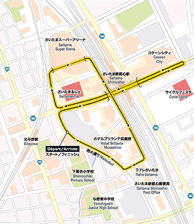 全長約3.1kmのコースは今年も「さいたまスーパーアリーナ」内をコースの一部としながら、より多くの方々にスタート・フィニッシュ地点の興奮を味わっていただくために、スタート・フィニッシュ地点と周回方向を変更いたしました。