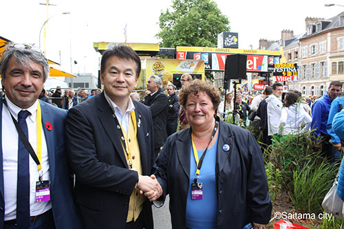 第5ステージフィニッシュ地点であるアミアン市のブリジット・フール市長、ギヨーム・デュフロ副市長と会談した。ツール・ド・フランスの誘致に関する意見交換や、「2015ツール・ド・フランスさいたまクリテリウム」をはじめ、さいたま市が誘致している「さいたま国際マラソン」、「第8回世界盆栽大会inさいたま」を紹介した。