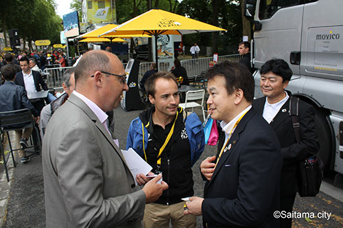 第6ステージスタート地点アブヴィル市のニコラ・デュモン市長、ヴァレリー・フールネロン前フランス国スポーツ担当大臣と会談した。ツール・ド・フランスの誘致に関する意見交換や「2015ツール・ド・フランスさいたまクリテリウム」をはじめ、さいたま市が誘致している「さいたま国際マラソン」、「第8回世界盆栽大会inさいたま」を紹介した。