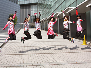 大声援の中を走ります。楽しくって嬉しくって、全員笑顔!