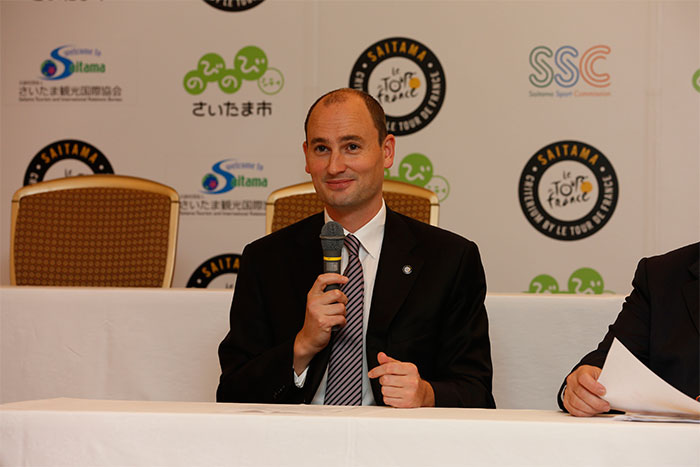 大会前夜に市内で記者会見が行われ、ツール・ド・フランスを主催するA.S.O. 代表ジャン= エティエンヌ・アモリ氏も出席。開催の意気込みを語った。