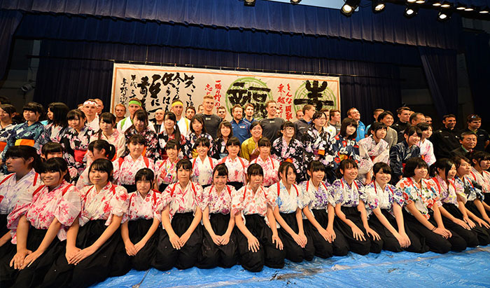 さいたま市内交流会の最後には県立与野高校の生徒たちと日本文化に触れた選手達が笑顔で記念撮影。