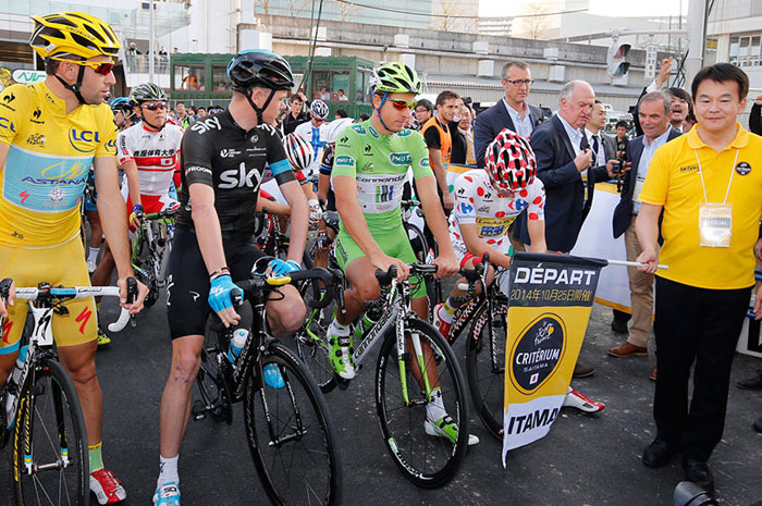 清水勇人さいたま市長のスタートフラッグで、クリテリウムメインレースが幕を開けた。