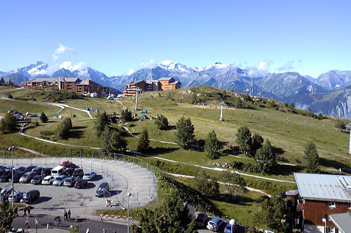 スキーリゾートのラルプデュエズはグルノーブル五輪のリュージュ・ボブスレー競技会場で、いまでもそのコースが滞在型ホテルのベランダから見える。