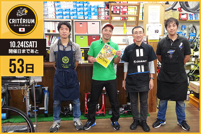 さいたまクリテリウムまであと53日!今日はさいたま市役所1F入口横で自転車(ピナレロ、サーベロ)の展示にご協力いただいている「スポーツバイクファクトリー北浦和スズキ」のみなさんが登場です!
