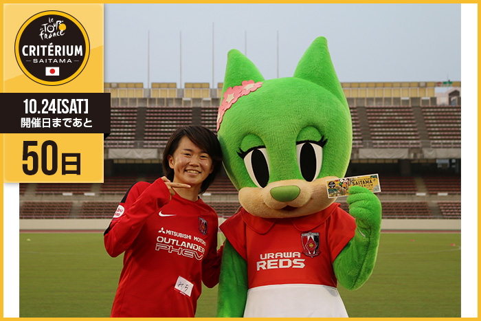 さいたまクリテリウムまであと50日!今日は女子サッカーチームの浦和レッズレディースから、キャプテンの後藤 三知選手と浦和レッズマスコットキャラクターのディアラちゃんが登場です!