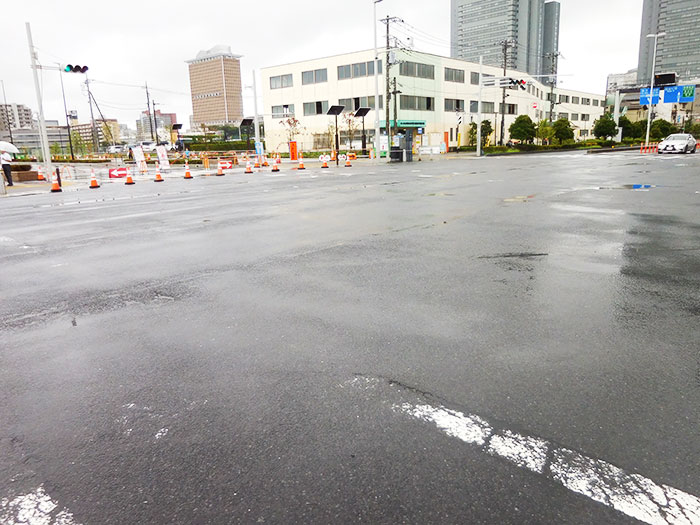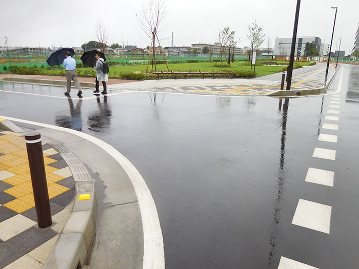 できあがったばかりの道路を直角に曲がって北上。コーナーでどれだけ自転車を倒して走っていくのか興味深い。