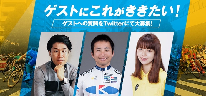 Twitter上でハッシュタグ「#さいクリ出場選手発表イベントQA」をつけて、ゲストに聞きたいことを質問してみよう!トークイベントにはサイクルロードレース解説者の栗村修氏、ツール・ド・フランスを主催するA.S.O.(アモリ・スポル・オルガニザシオン)の代表者、そして鈴木優華2018さいクリ広報部長に加え、新たに全日本選手権ロードレースチャンピオンの山本元喜選手が参加することが決定しました。