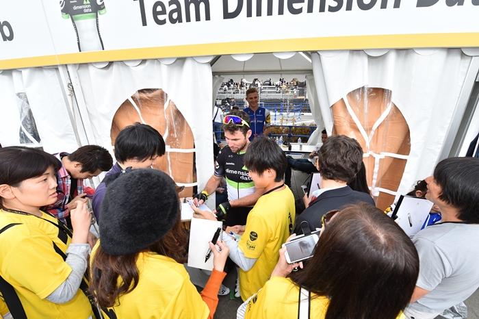 オフィシャルサポーターズの個人プラチナサポーターが、レース前のピットを訪問し選手と交流。
