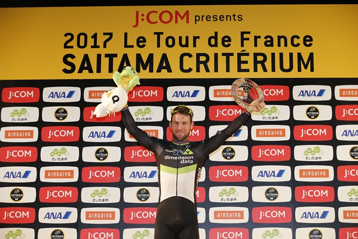 表彰台で満面の笑みを浮かべるマーク・カヴェンディッシュ選手。