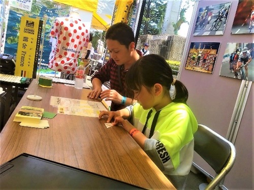 7月6日から始まる「ツール・ド・フランス2019」に出場する選手達の安全と健康を祈念し、ツール・ド・フランス4賞ジャージ柄の折り鶴をイベント会場にご来場の皆様に折っていただき、大会開催期間中にフランスへ届ける企画として5月から実施しました。今年は6カ所のイベント会場で「鶴 de France」を行い、過去にご参加いただいた方や、今回初めてお越しいただいた方にもご協力いただきました。