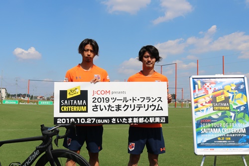 19/09/24メディアJ:COM presents 2019ツール・ド・フランスさいたまクリテリウム(10月27日、さいたま新都心駅周辺にて開催)と地元さいたまのプロサッカークラブ 浦和レッドダイヤモンズ、大宮アルディージャが、地域のスポーツ文化を醸成することを目的に行う相互プロモーション活動の一環として、両クラブにてさいたまクリテリウムのPRを実施いたしました。