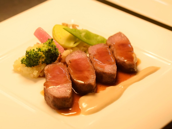 メインディッシュは、国産和牛のサーロインを塊のままじっくりとオーブンで火を入れ、ローストビーフのように焼き上げました。