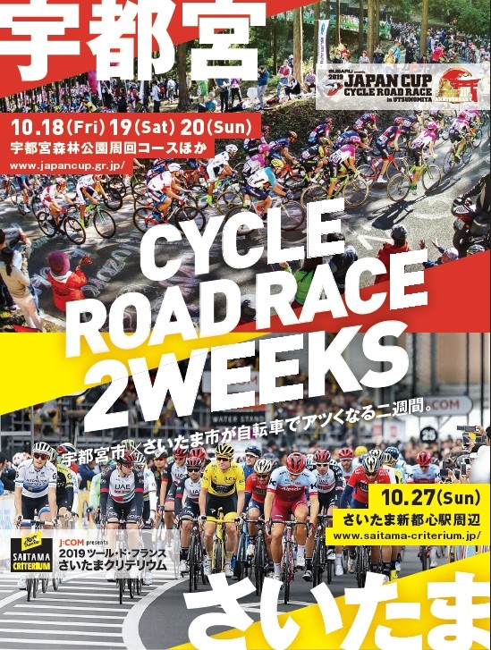 「SUBARU presents 2019ジャパンカップサイクルロードレース」と「J:COM presents 2019ツール・ド・フランスさいたまクリテリウム」が「自転車でアツくなる二週間。」をキーワードに、初となるコラボポスターを制作し、宇都宮市とさいたま市を結ぶJRおよび東武鉄道の沿線の駅にポスターを掲出することが決定いたしました。