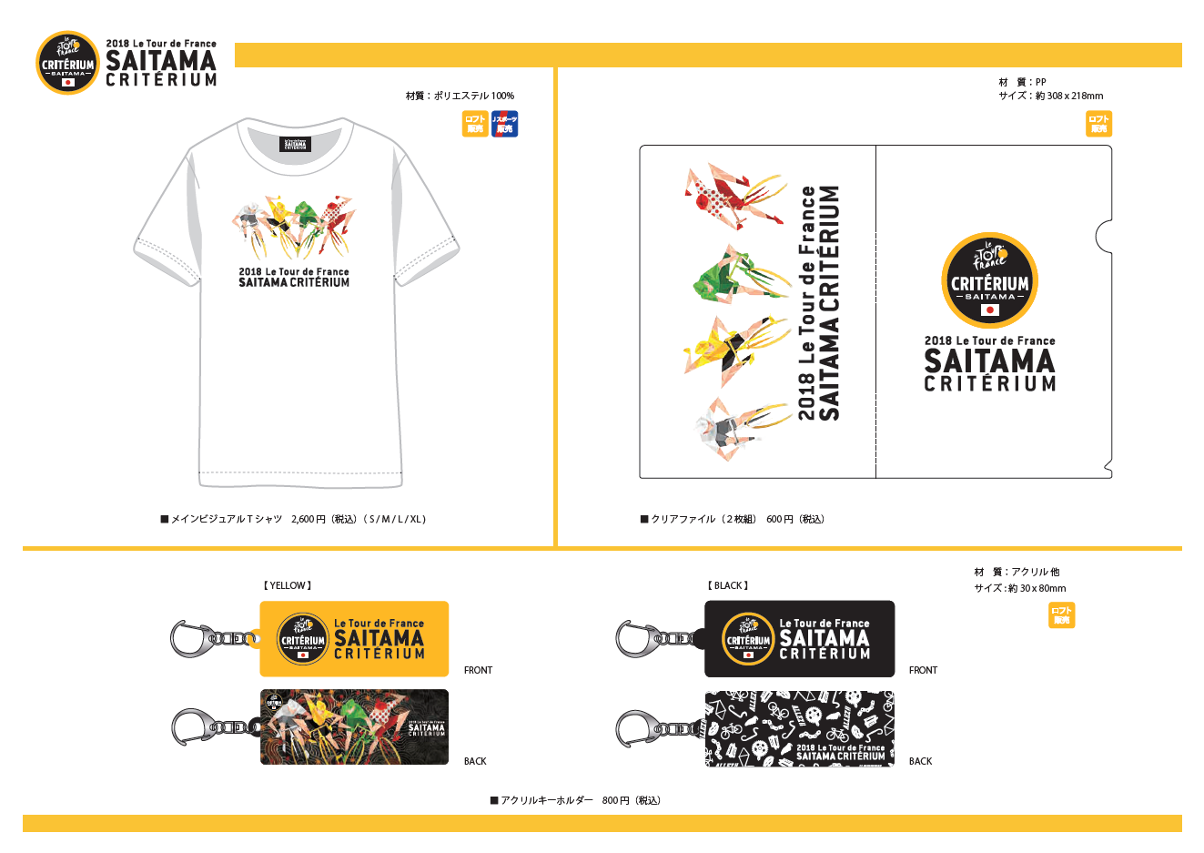 2018さいたまクリテリウム実行委員会では、「J:COM presents 2018ツール・ド・フランスさいたまクリテリウム」のオフィシャルグッズ第一弾の販売を6月28日(木)からオフィシャルオンラインショップにて開始します。また、7月6日(金)からJ SPORTS オンラインショップにて、8月11日(土)からはロフト3店舗(さいたま新都心・大宮・浦和)にてそれぞれ販売を開始いたします。