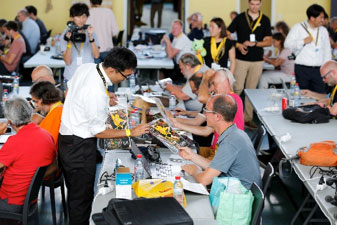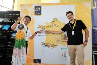 大会のPR企画として実施した「鶴 de France」(つる ど ふらんす)の「千羽鶴」を贈呈しました。ツール・ド・フランス本大会で千羽鶴を贈呈するのはこれで3年連続となり、A.S.O.大会ディレクターのクリスティアン・プリュドム氏へ手渡しました。その後、「ツール・ド・フランスさいたまクリテリウム」に4回出場しているマルセル・キッテル選手や、昨年さいたまクリテリウムを制したマーク・カヴェンディッシュ選手にも手にとっていただきました。千羽鶴に詰まった皆様の想いに選手達も笑顔で応えてくれました。