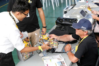 第4ステージ フィニッシュ地点付近にあるプレスセンターを訪問。世界各国から訪れている取材陣に対し、英語で制作した大会チラシや、オリジナルステッカーを渡して、大会及びさいたま市をPRしました。