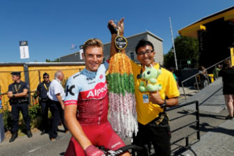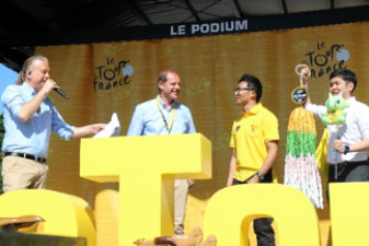 ツール・ド・フランス公式SNSや地元スポーツ紙にて贈呈式の様子が紹介