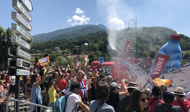 ツール・ド・フランスの沿道で待ち構える観衆のボルテージは選手が近づくにつれて高まっていく。交通規制された道を関係車両だけが慌ただしく走り去り、憲兵隊のバイクがにらみをきかせながら悠然と通過していく。1時間前には派手な音楽を鳴らした広告キャラバン隊が。そしてレース展開を伝えるアナウンス車。報道車両。カメラマンバイク。露払い役のテットドクルス(先導車)…。