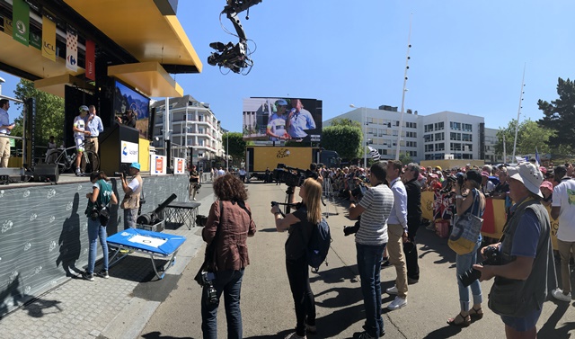 ヘリコプターはツール・ド・フランスの運営になくてはならない機材だ。憲兵隊、フランス警察、消防、医療サポートに加え、空撮カメラ、バイクからの撮影映像を受信して基地局に飛ばす役目のヘリも飛ぶ。ツール・ド・フランスとともに20機ものヘリが常に上空を旋回するのである。